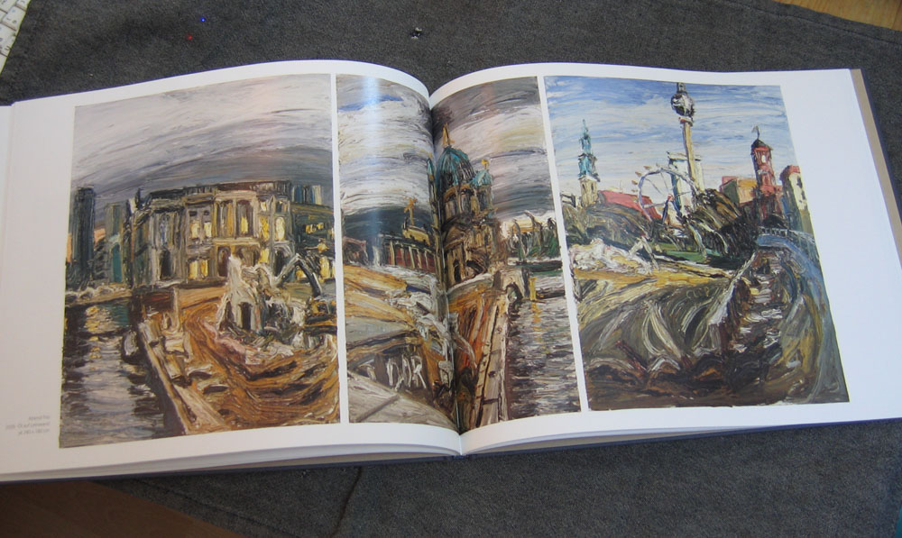 The larger of the two Lehmpfuhl catalogues is full of thrilling, swirling, huge plein air paintings from an exhibition called ‘Die Neue Mitte’. The series of paintings was created to document the controversial, politically-motivated demolition of an East German landmark building in Berlin, the Palast der Republik, which was open to the public as well as being the home of the DDR parliament and the people’s chamber, or Volkskammer.