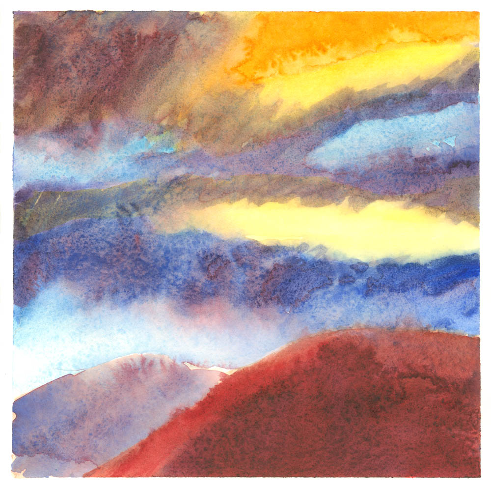 The Nolde book is very inspiring and propelled me towards my watercolour tubes and pans, resulting in some enthusiastic and richly-hued daubs. I still can’t work out how Nolde achieved such dense, strong colour. Maybe it was the particular shades he chose to work with and maybe he created numerous layers. The more ‘stainy’ colours I used held up relatively well but the others did what watercolours often do – looked vivid while wet but faded to a whitish glow on drying.
