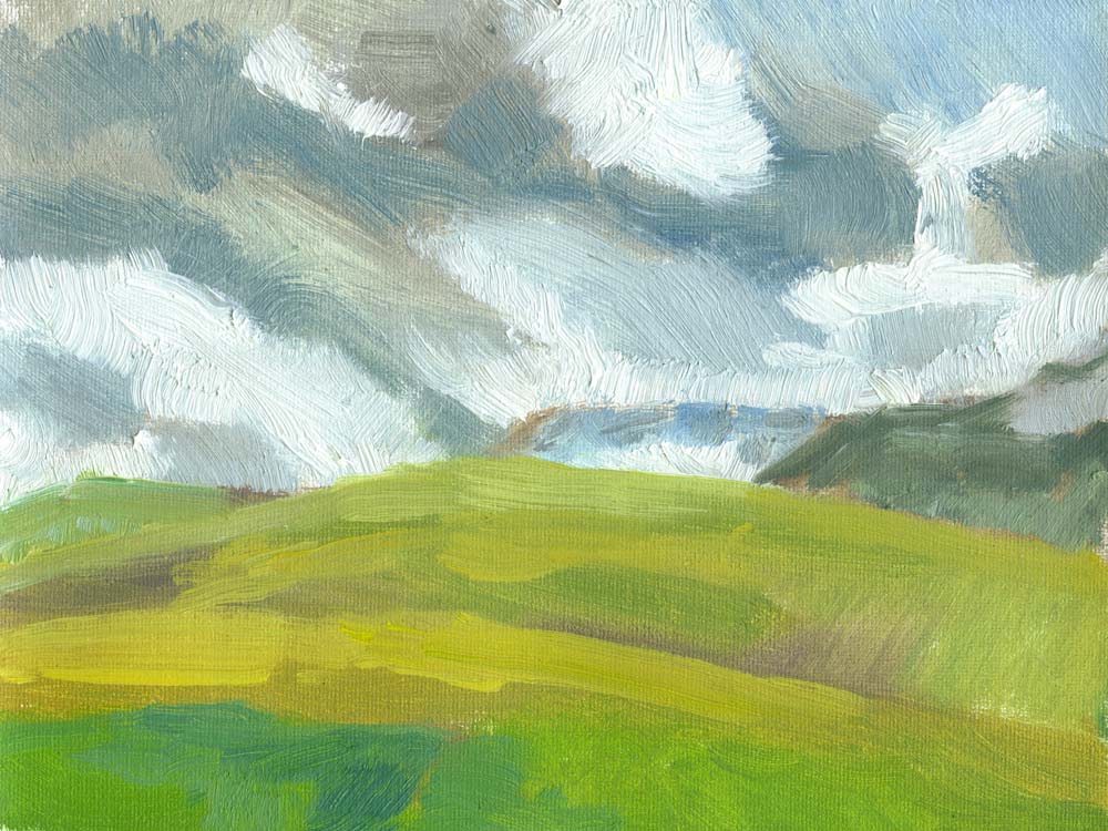 Fells and Clouds, oil on canvas, 6″x8″