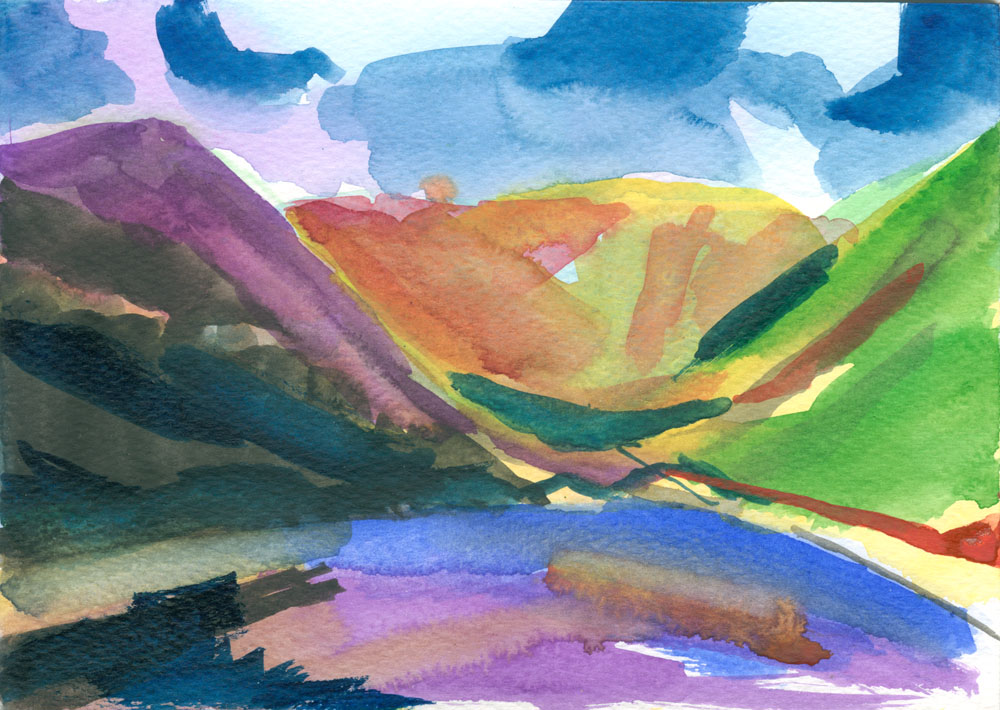 Kentmere reservoir – watercolour sketch on paper, 5″x7″