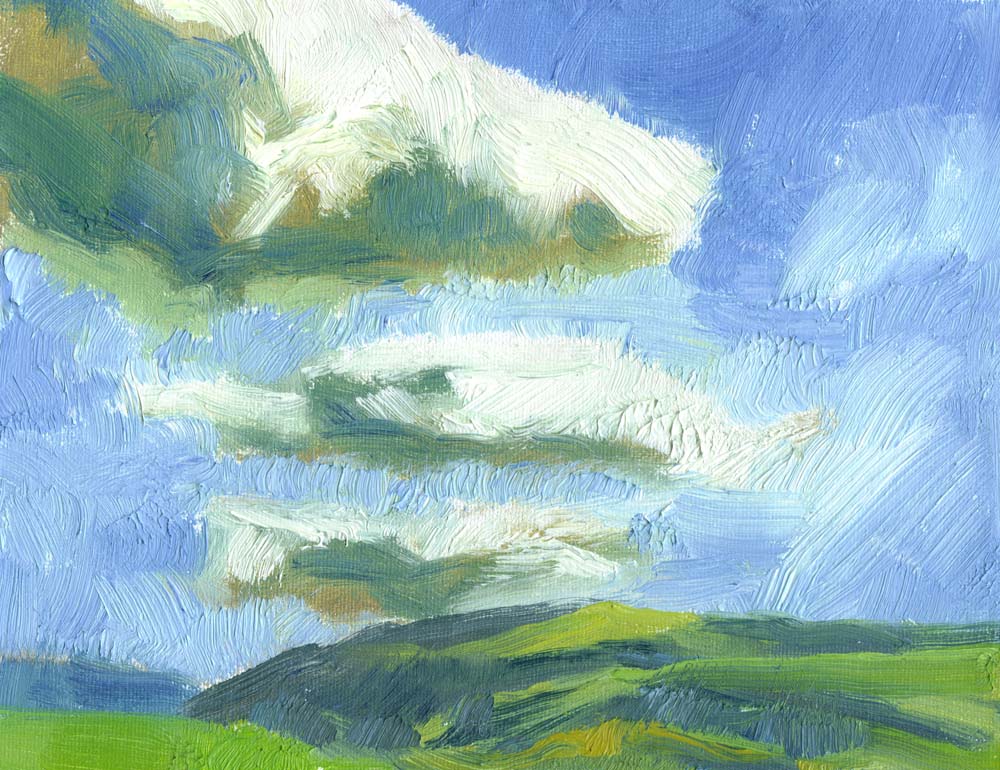 Bright Clouds, oil on canvas, 6″x8″