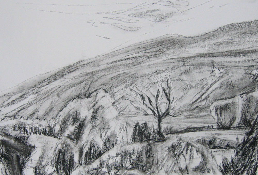 ruined building, Glendale, Skye, compressed charcoal on A1 paper