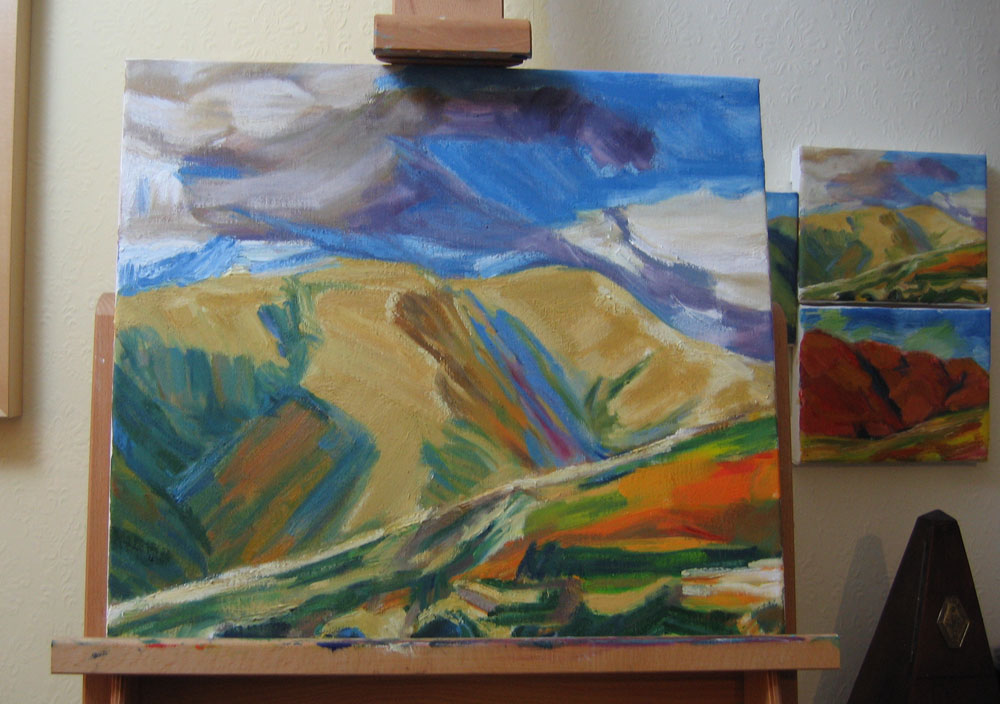 It is quite odd admitting to yourself that you have a fascination with smearing colourful greases about on pieces of material, and thinking that you could probably continue to find it incredibly engaging and interesting throughout life. Yet it isn’t really any stranger than other people’s passions (I hope). This week’s work seems to have taken hours yet not much change to show for it – but painting always seems to be one step forward two steps back (and then sometimes a big jump forward and you never know why).